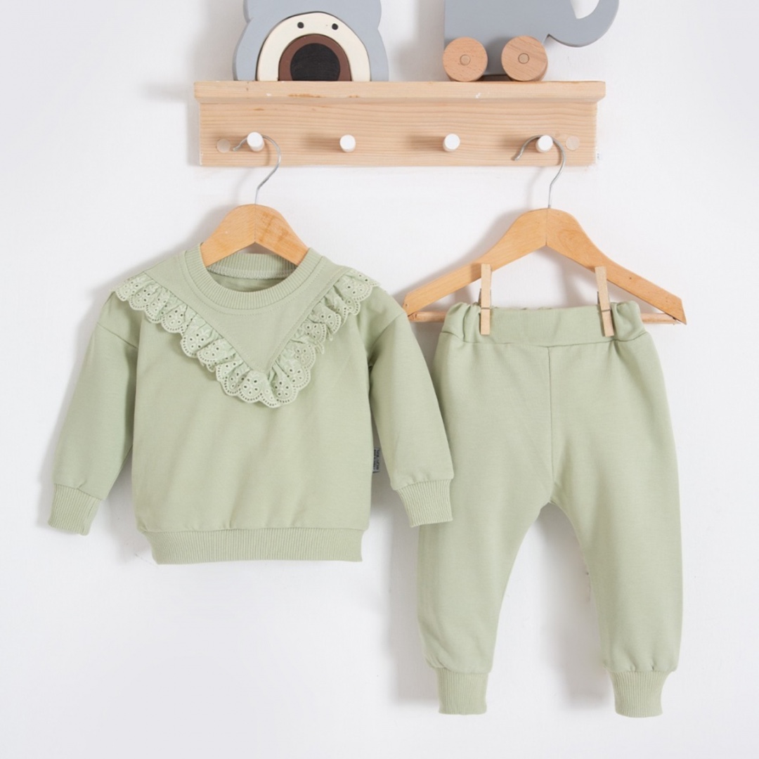 Bρεφικό κοριτσίστικο σετ φόρμας με βολανακι στο πάνω μέρος σε χρώμα μέντα .