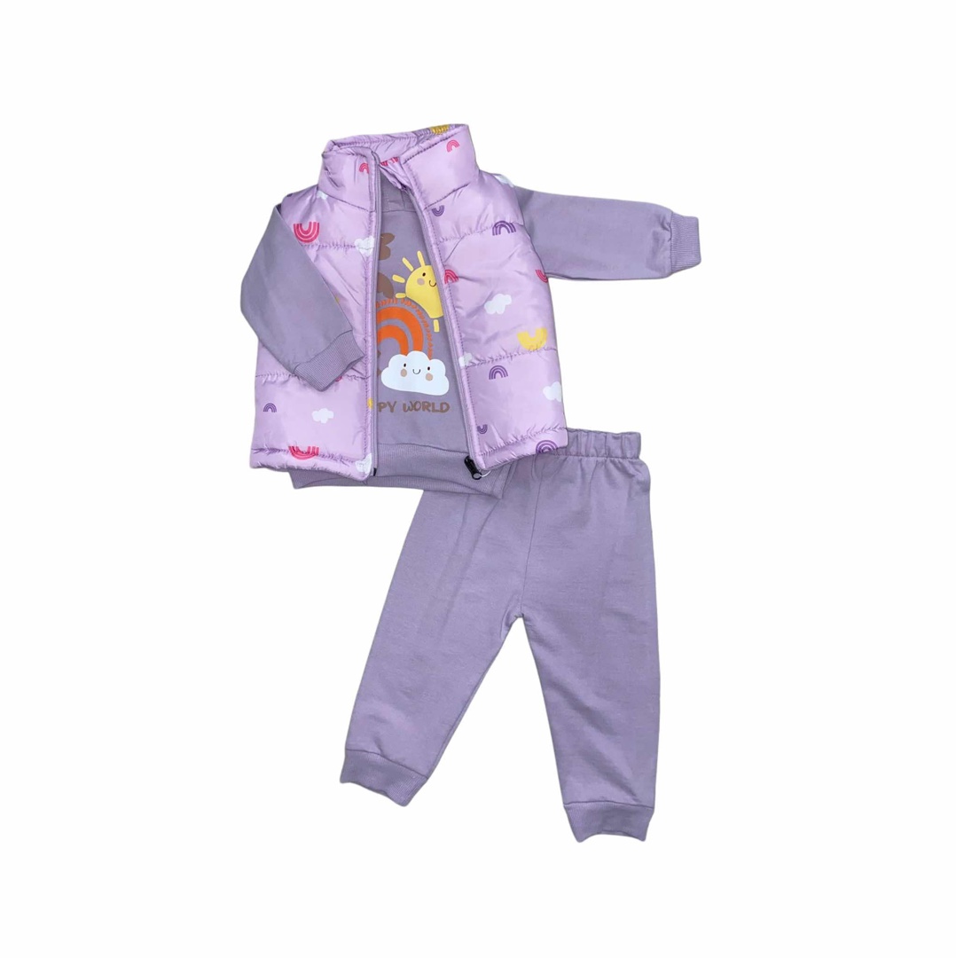 Βρεφικό κοριτσίστικο σετάκι με αμάνικο μπουφάν μωβ .