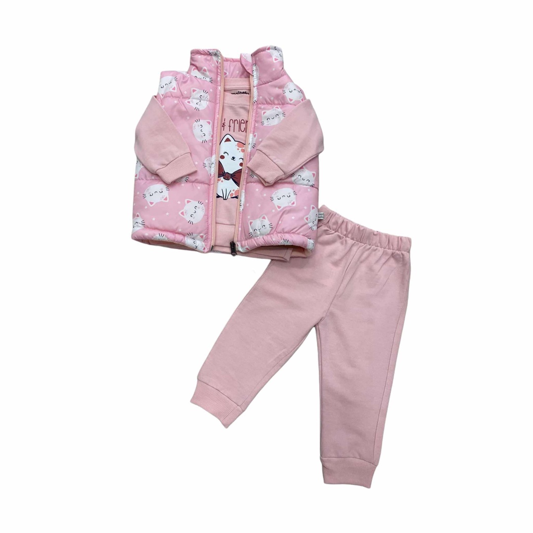 Βρεφικό κοριτσίστικο σετάκι με αμάνικο μπουφάν pink