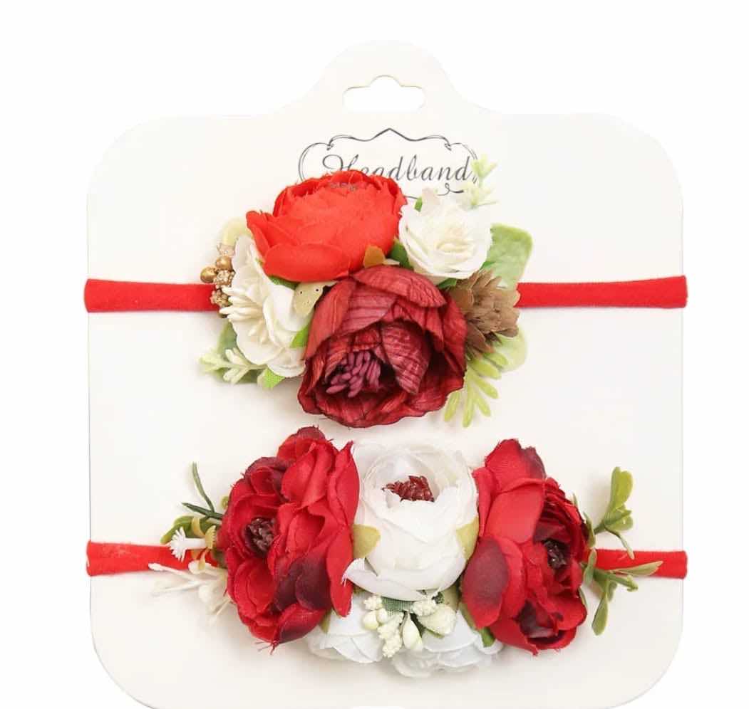 Βρεφικές κορδέλες – Flowers headband – Σετ 2τμχ