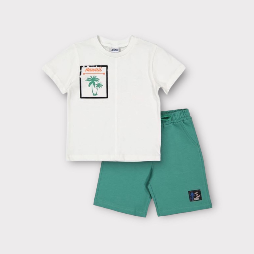 Βρεφικό / παιδικό αγορίστικο σετ με t-shirt με ωραίες λεπτομέρειες ,πράσινο σόρτς