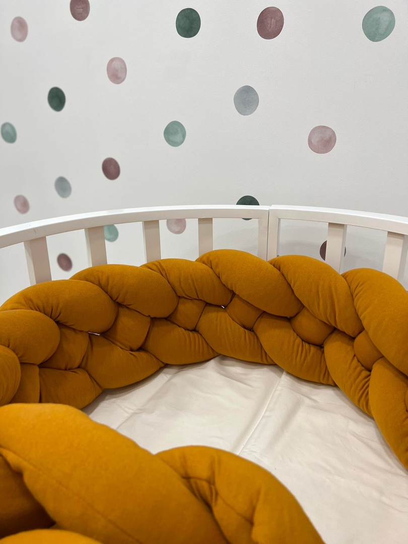Χειροποίητη πλεξούδα 4 πλέξεων που τοποθετείται περιμετρικά της κούνιας, δημιουργώντας ένα ζεστό περιβάλλον για το μωρό σας.