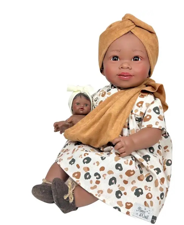 Nines D’Onil: Μωρό Maria με καφέ φόρεμα και μωρό σε μάρσιπο