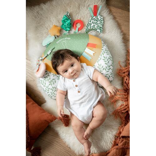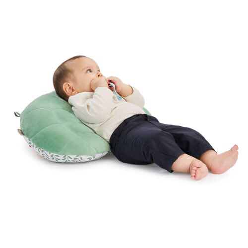 Το μαξιλάρι είναι στρογγυλεμένο, διαθέτει πολύ απαλό ύφασμα και αγκαλιάζει το μωρό σε μια ιδανική θέση ξεκούρασης. Είναι ιδανικό για μετά το τάισμα του μωρού ώστε να το βοηθήσει στην πέψη. Από πλευράς υγιεινής, υπάρχει ύφασμα που μπορεί να απλωθεί από την κάτω πλευρά στο πάτωμα, ώστε το μωρό να μην έρχεται σε απευθείας επαφή με το έδαφος.